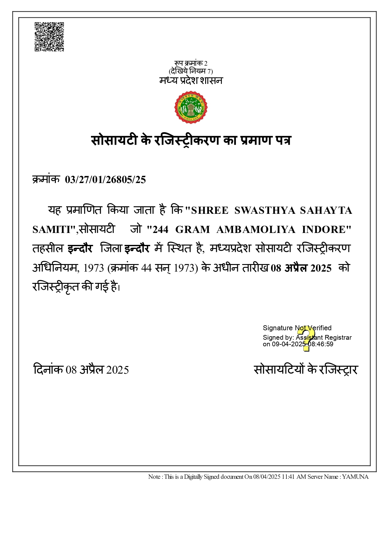 Society Certificate